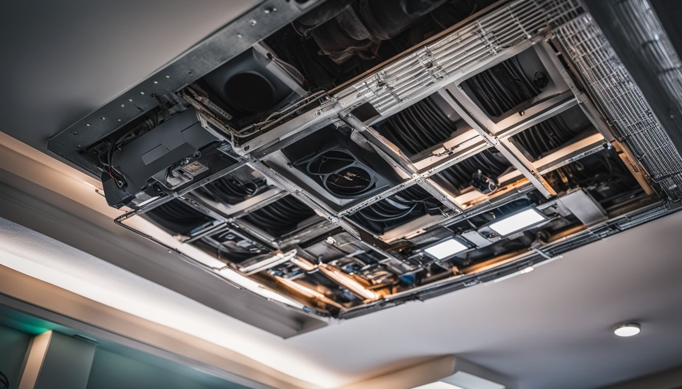 Cassette AC units, which hang from the ceiling, are great for large areas like shops or single-floor homes. They save energy with smart airflow that goes all around the room. Split AC systems have two parts – one inside and one outside – connected by pipes; they’re good too but may be trickier to put up.